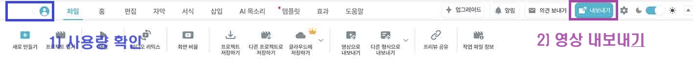 만든 영상을 내보내는 기능입니다. 파일 탭에도 같은 기능이 있습니다.