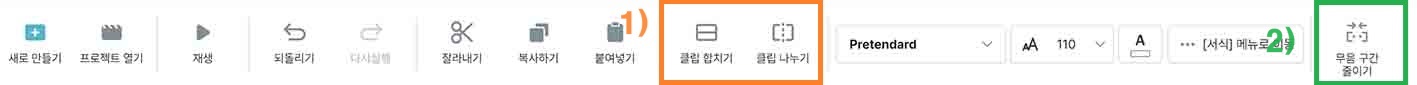 자주 쓰는 기능은 클립 합치기와 클립 나누기입니다.