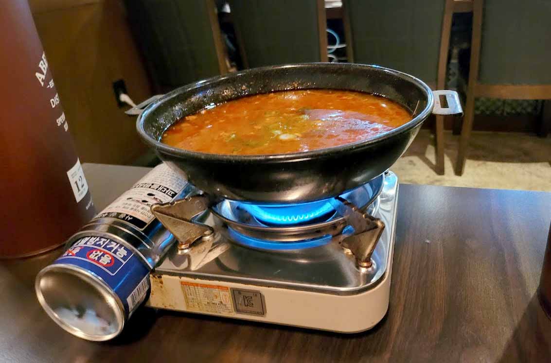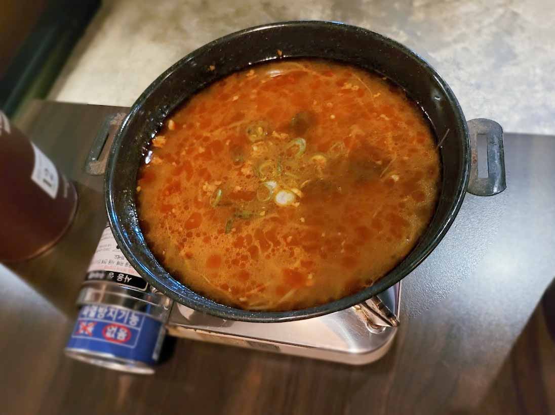 이 국물이 정말 맛있습니다. 얼큰하고 시원합니다. 육사시미나 뭉티기랑 잘 어울릴 것 같습니다.