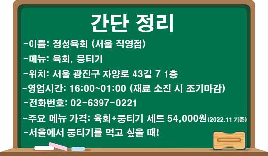 뭉티기 서울직영점은 아차산역(어린이대공원 후문) 근처에 있습니다.