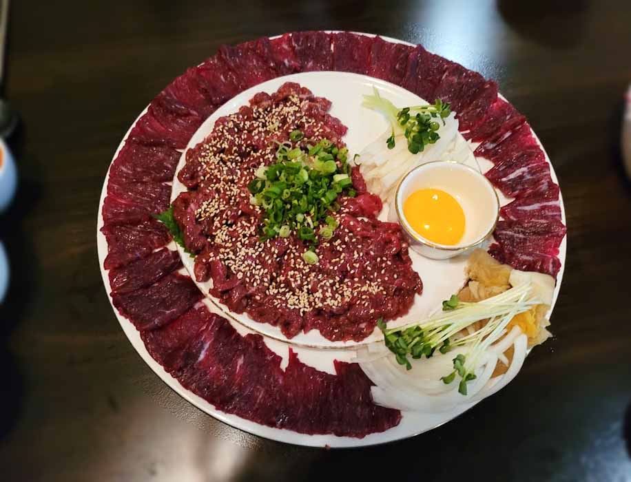 전에 포스트에서도 말한 적이 있는데 육회와 노른자의 조화는 정말 색감이 이쁘게 나오는 것 같습니다.
