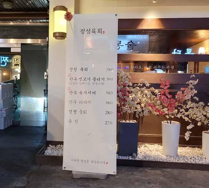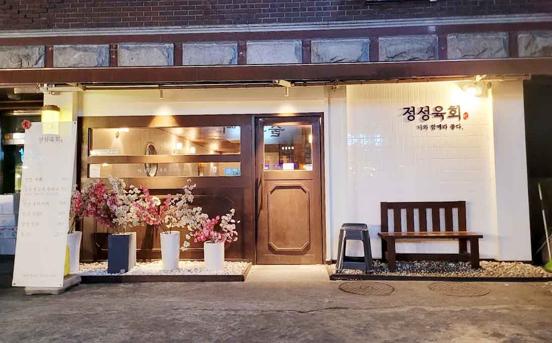 찰진 식감과 육향이 일품인 음식점 정성육회였습니다.