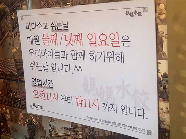 한자로 마마수교라고 써있고, 마마수제만두라고 써있습니다.