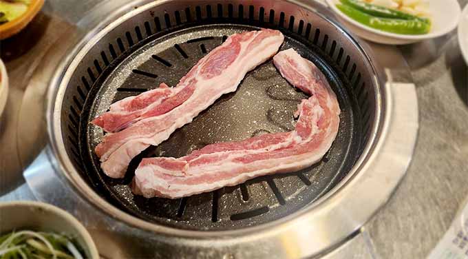 구우면서 쉬지 않고 먹기 위해 목살도 바로 구워줍니다.