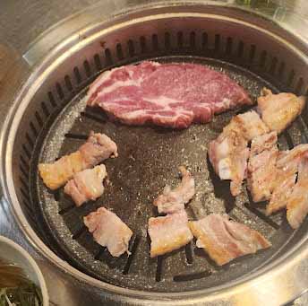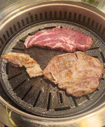 구우면서 쉬지 않고 먹기 위해 목살도 바로 구워줍니다.
