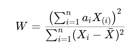 정렬된 데이터와 계산된 계수를 사용하여 검정 통계량 W를 계산합니다. 이 값은 데이터가 정규 분포를 얼마나 잘 따르는지를 나타냅니다.