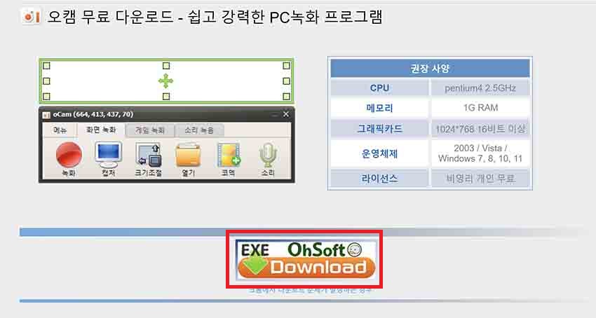 oCAM은 아래 링크에서 다운받으면 됩니다.