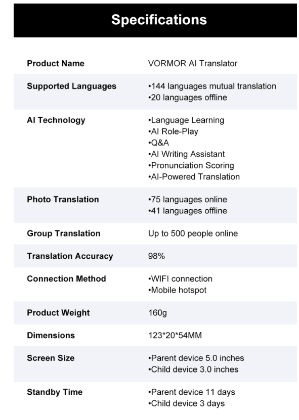 144 Languages Online | 20 Languages Offline | AI Assistant | Group Chat | Photo Translation | Check out 'VORMOR: First Detachable Dual-Screen Translator' on Indiegogo.