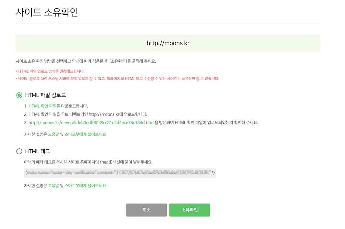 이제 네이버 서치 어드바이저에가서 소유 확인을 눌러주면 정상적으로 네이버 검색에 등록이 됩니다.