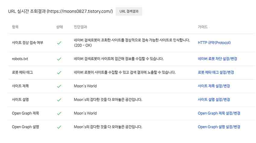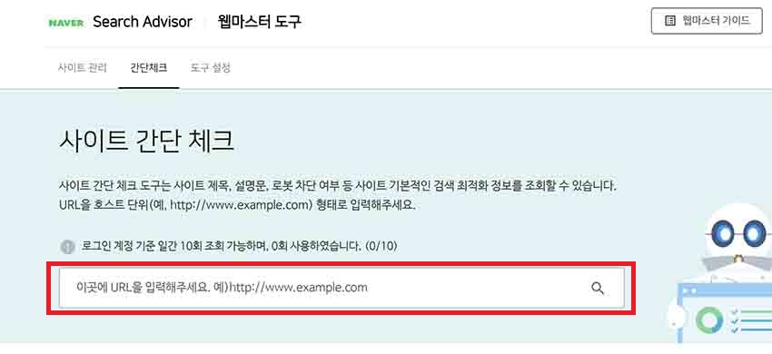 네이버 서치 어드바이저 웹마스터 도구에서 위에 있는 간단체크를 눌러줍니다.