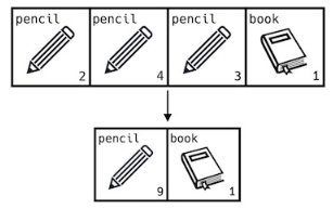 선빈이는 게임을 즐기던 중 가지고 있는 물건이 너무 많아 창고 정리를 하기로 했습니다. 선빈이가 보유한 게임 속 창고는 여러 칸으로 나누어져 있고 각 칸에는 물건들이 담겨있습니다. 창고를 정리할 방법을 고민하던 선빈이는 같은 물건이 여러 칸에 나누어 들어있는 것을 발견하고 우선 같은 물건끼리 최대한 겹쳐쌓는 방식으로 창고를 정리하기로 했습니다. 선빈이의 창고에 들어있는 물건의 이름과 개수는 리스트 형태로 주어지며, 한 칸에 겹쳐질 수 있는 물건의 개수에는 제한이 없다고 가정합니다.