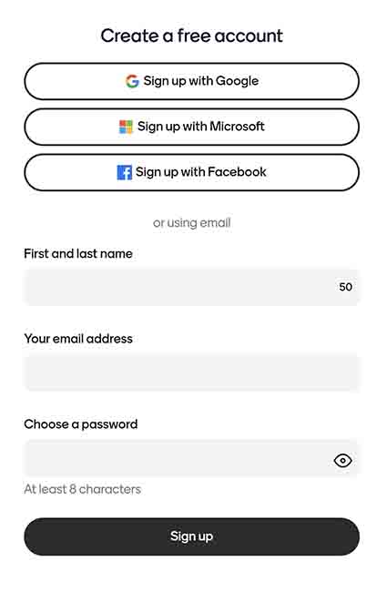 회원가입은 구글, 마이크로소프트, 페이스북 아이디 그리고 자체적으로 만들 수 있습니다.