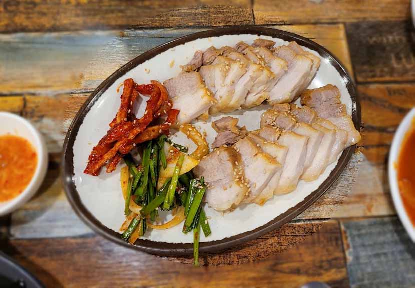 반찬을 열심히 집어먹다 보니, 수육이 나왔습니다.