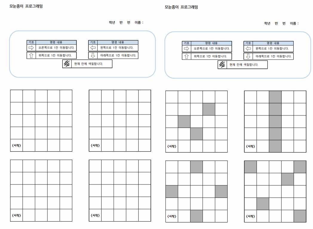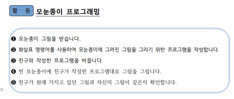 활동 3은 언플러그드 활동인 모눈종이 프로그래밍으로 잡았습니다.