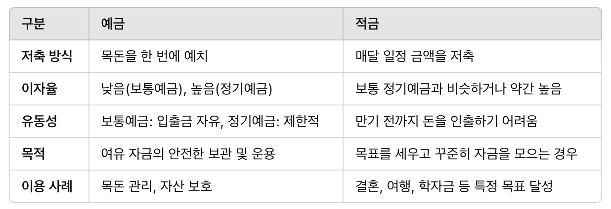 예금은 목돈이 이미 준비되어 있거나, 안정적으로 자금을 운용하고 싶은 경우에 적합합니다.