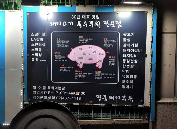 정확히 가게 이름은 정장군집이네요. 네이버 검색에는 명품돼지집부속전문 이라고 되어있습니다.