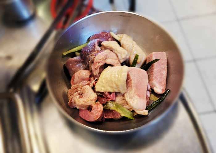 돼지고기 잡내가 전혀 안 나고, 불향이 잘 어우러진 쫄깃한 돼지고기 부속을 파는 집입니다.