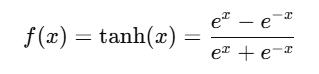 하이퍼볼릭 탄젠트 함수는 입력값을 -1과 1 사이의 값으로 압축하는 S자 형태의 비선형 함수입니다.