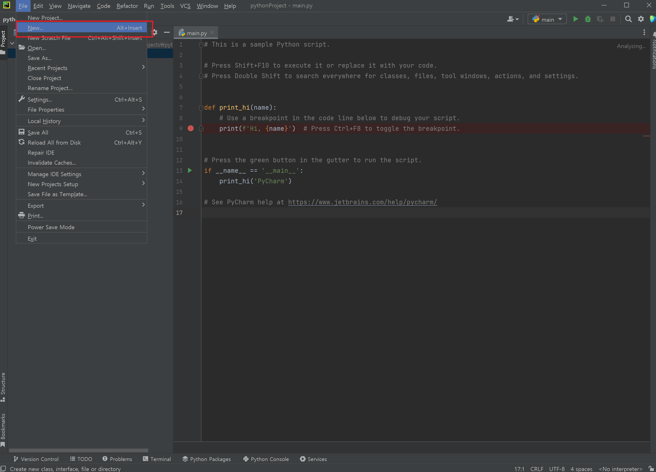이제 신규 파이썬 파일을 만들어 보겠습니다.